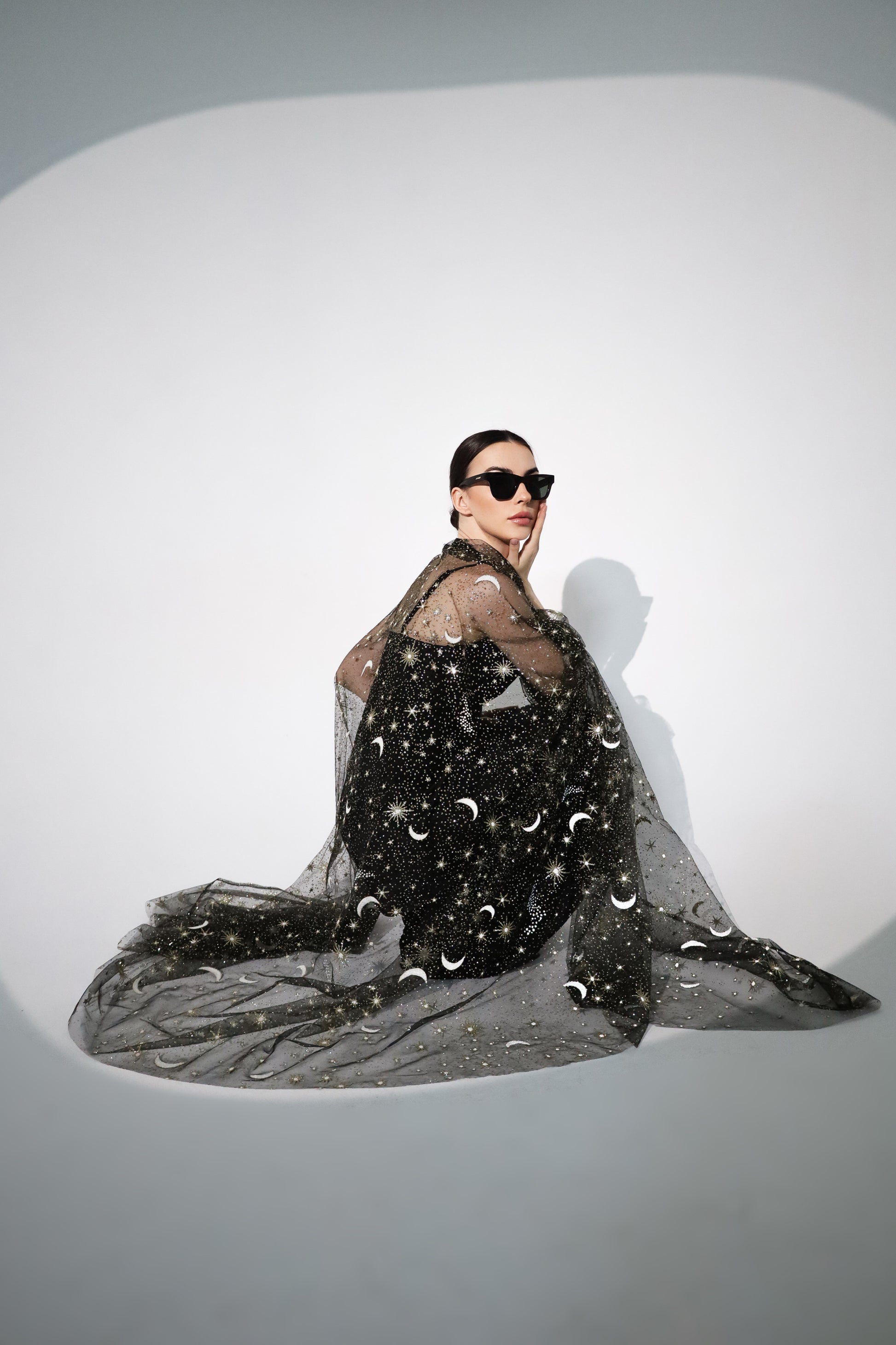 fabric : tulle with golden glitter (glitter sheds)